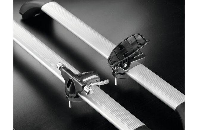 Kompatibel mit allen Fahrradtypen (auch mit Scheibenbremsen) und Trägergestängen für Autos (bis zu 80 x 50 mm)