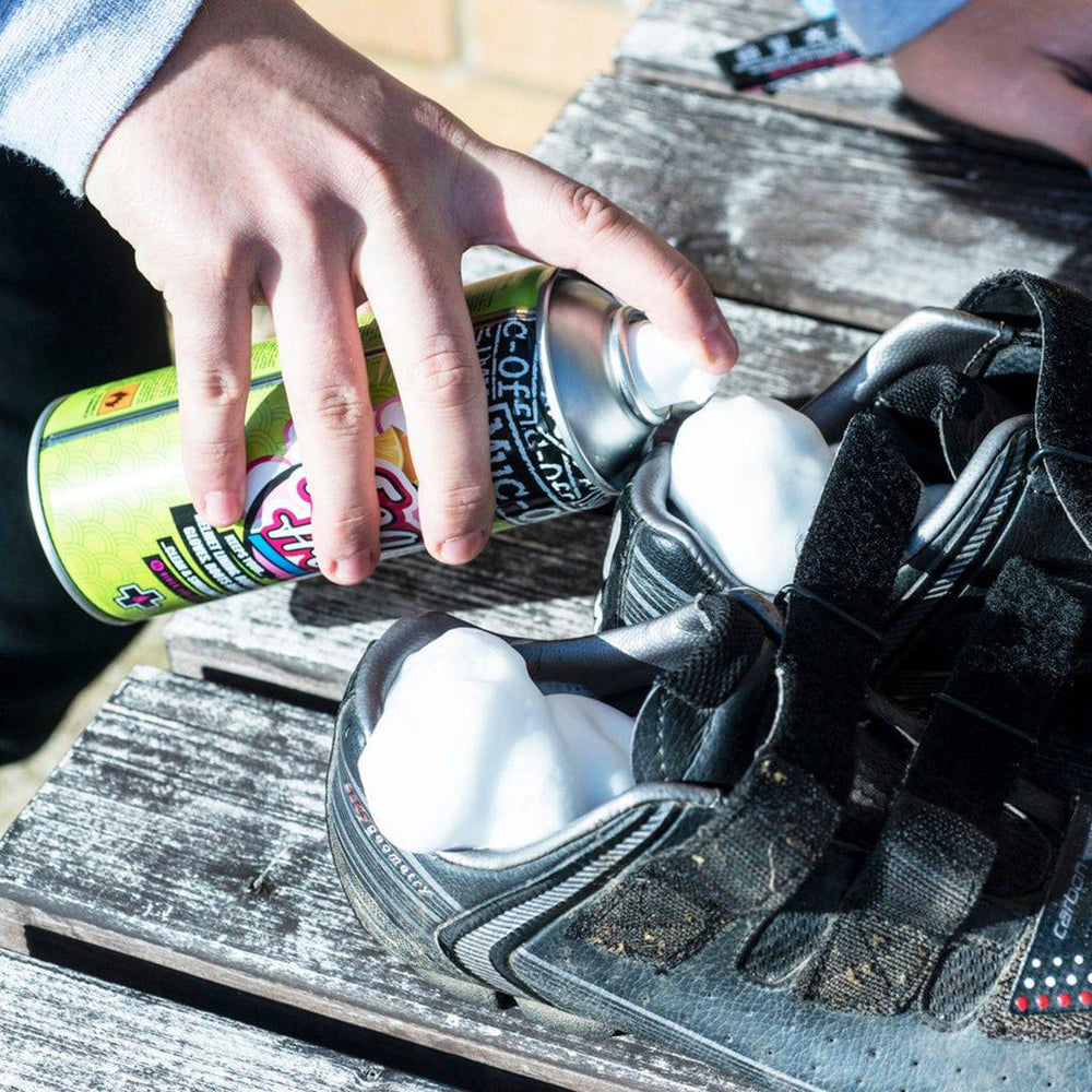 Das Muc-Off Helmet Foam Fresh ist die ideale und schnelle Möglichkeit in den verschwitzten Helm, Schoner oder Schuh neue Frische zu bringen. Einfach den Schaum auftragen und einige Minuten einwirken lassen. Danach mit einem trockenen Tuch auswischen.