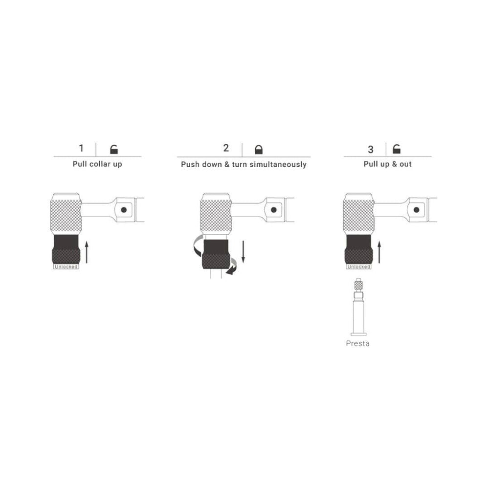 Vollständig CNC-gefräster Presta-spezifischer Ventilkopf, der eine schnelle und präzise Verbindung mit Presta-Ventilen ermöglicht.