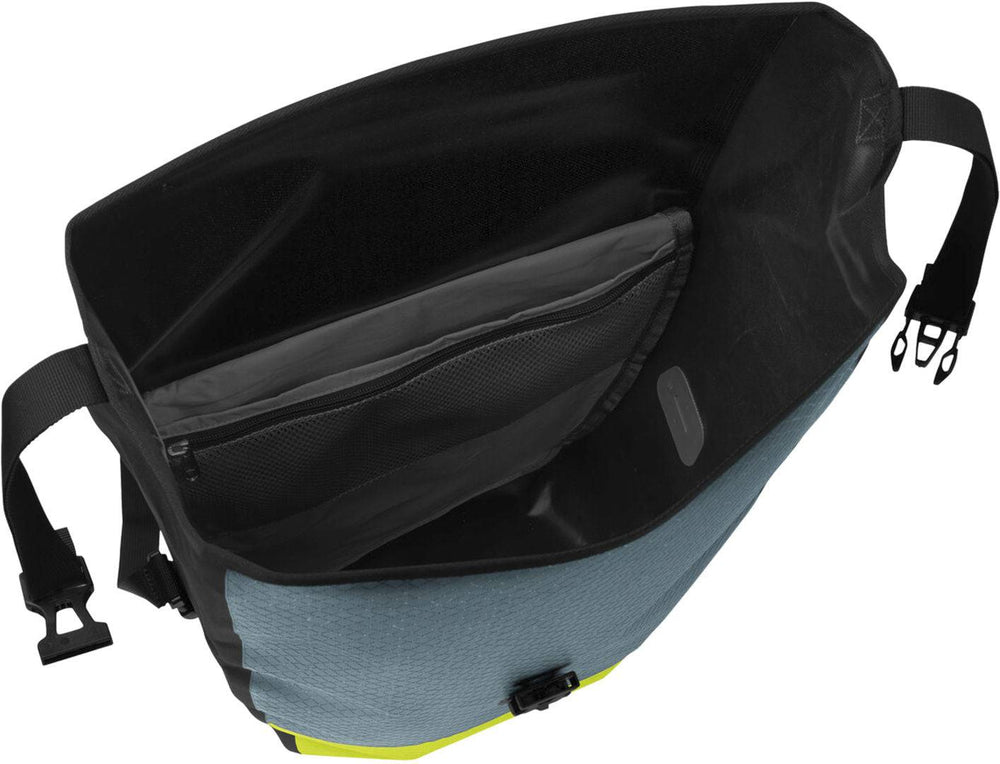 geräumiges Hauptfach, Innentasche, wasserdichter Wickelverschluss, Rollverschluss nach oben und unten schliessbar, abnehmbarer Schultergurt, Schulterträger auch als Spanngurt nutzbar, Reflexlogo , leicht einstellbares QMR 2.0 Befestigungssystem, QMR abschliessbar, Befestigungssystem QMR 2.0 passt auf runde Gepäckträgerrohre mit Durchmessern von 8-16 mm